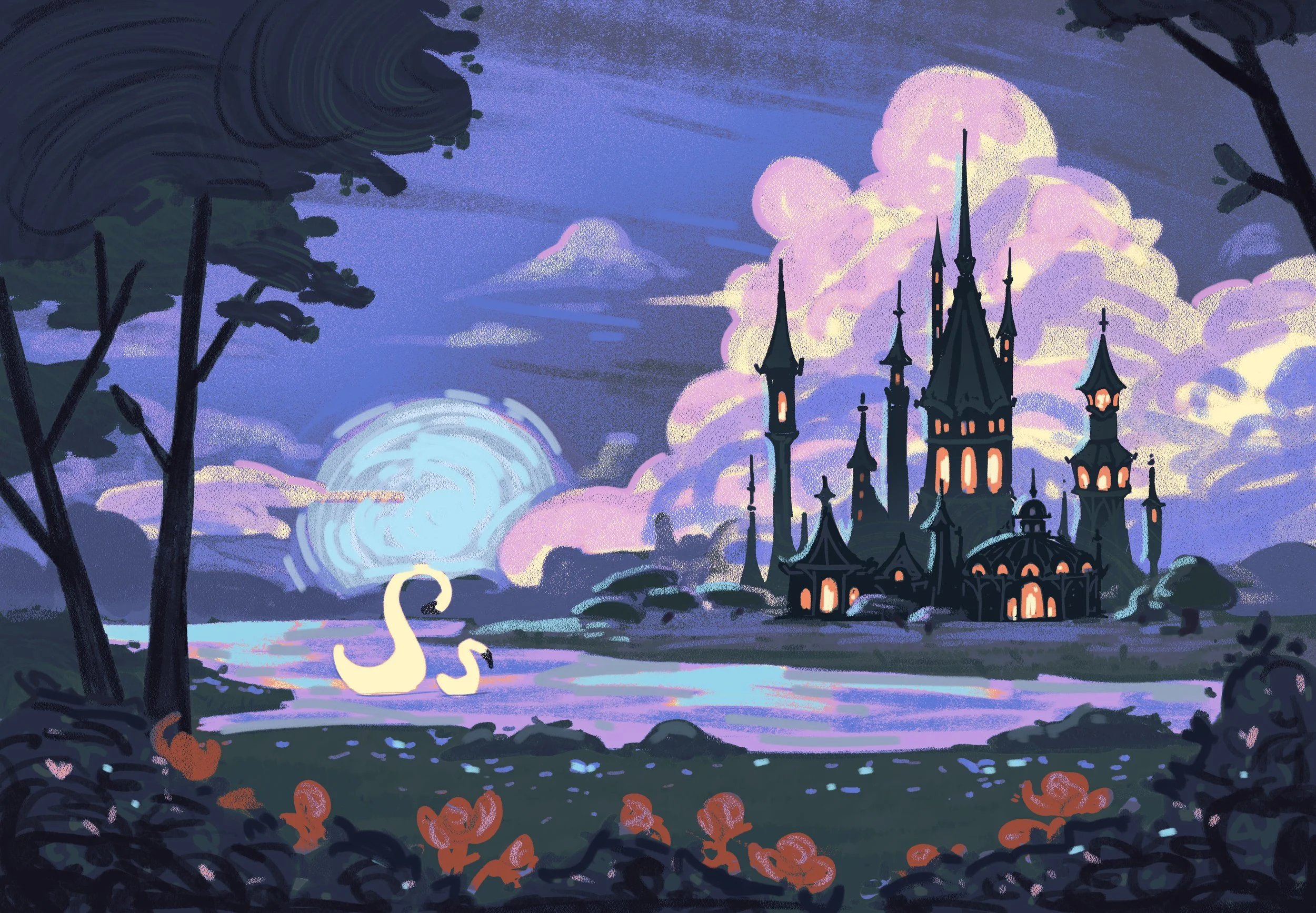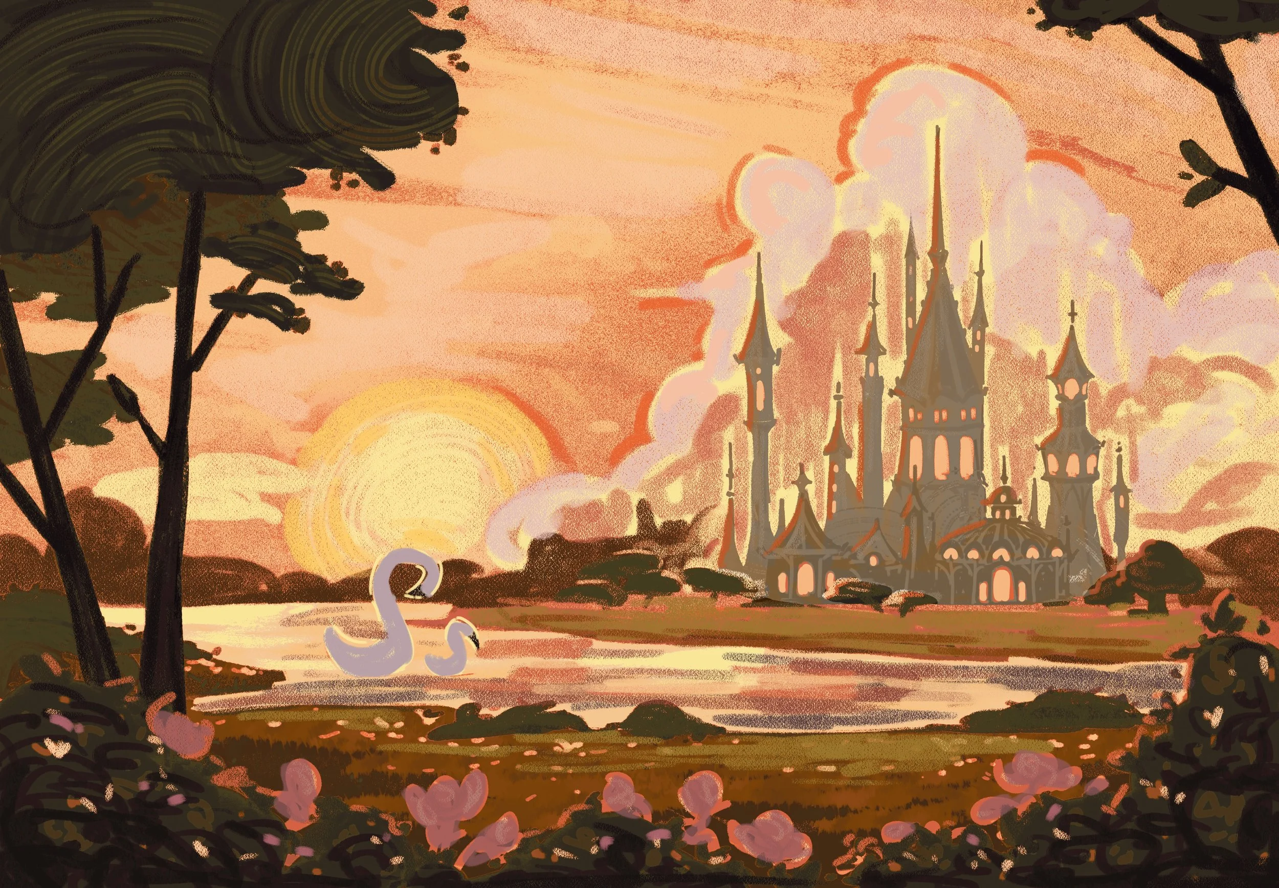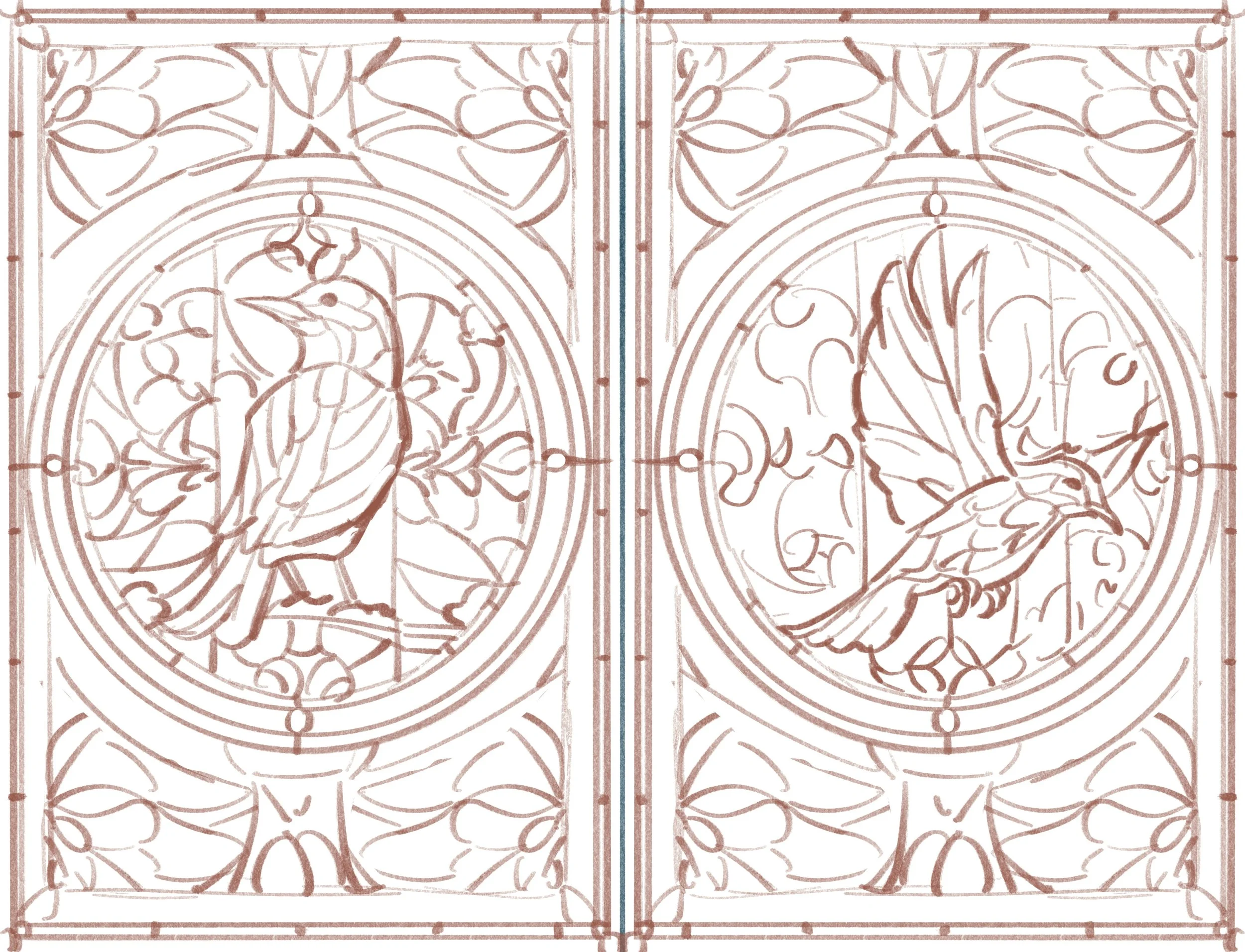 Illustrated two endpapers for Owlcrate’s special edition of The Swan’s Daughter by Roshani Chokshi.