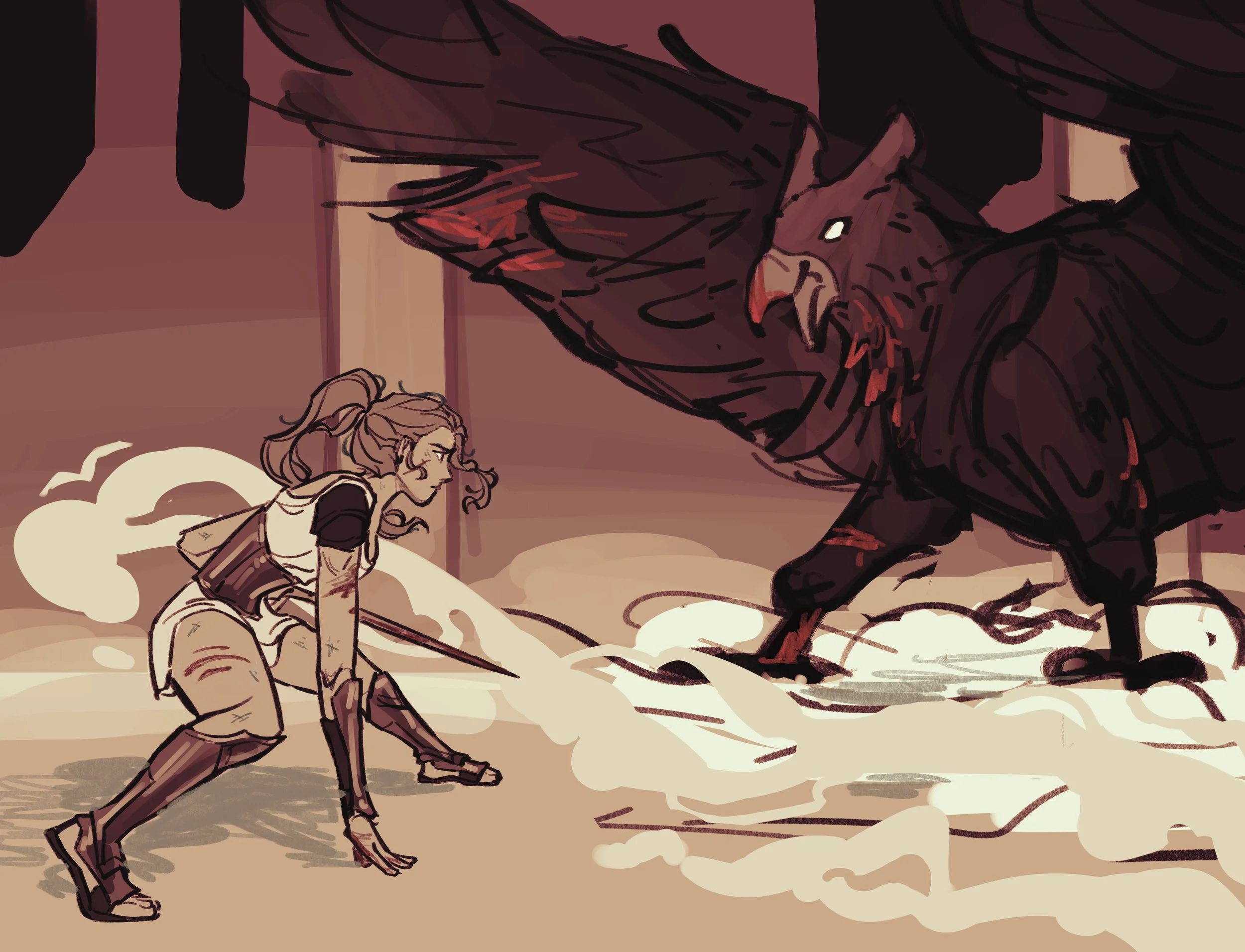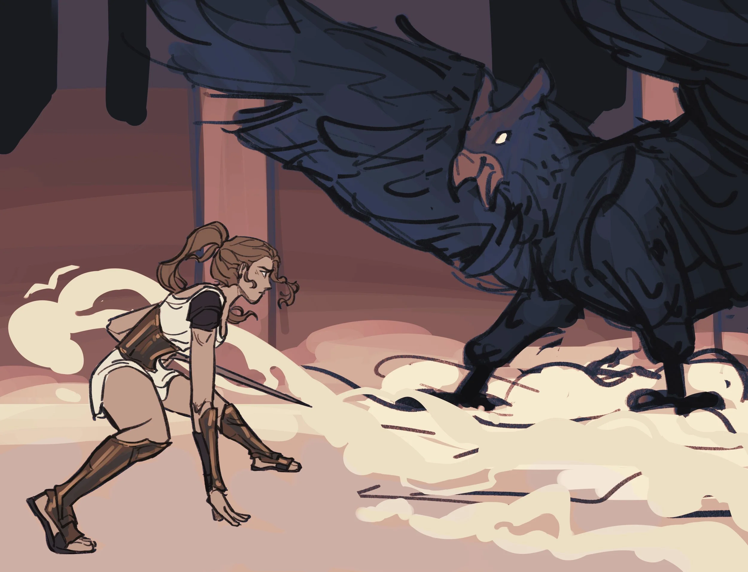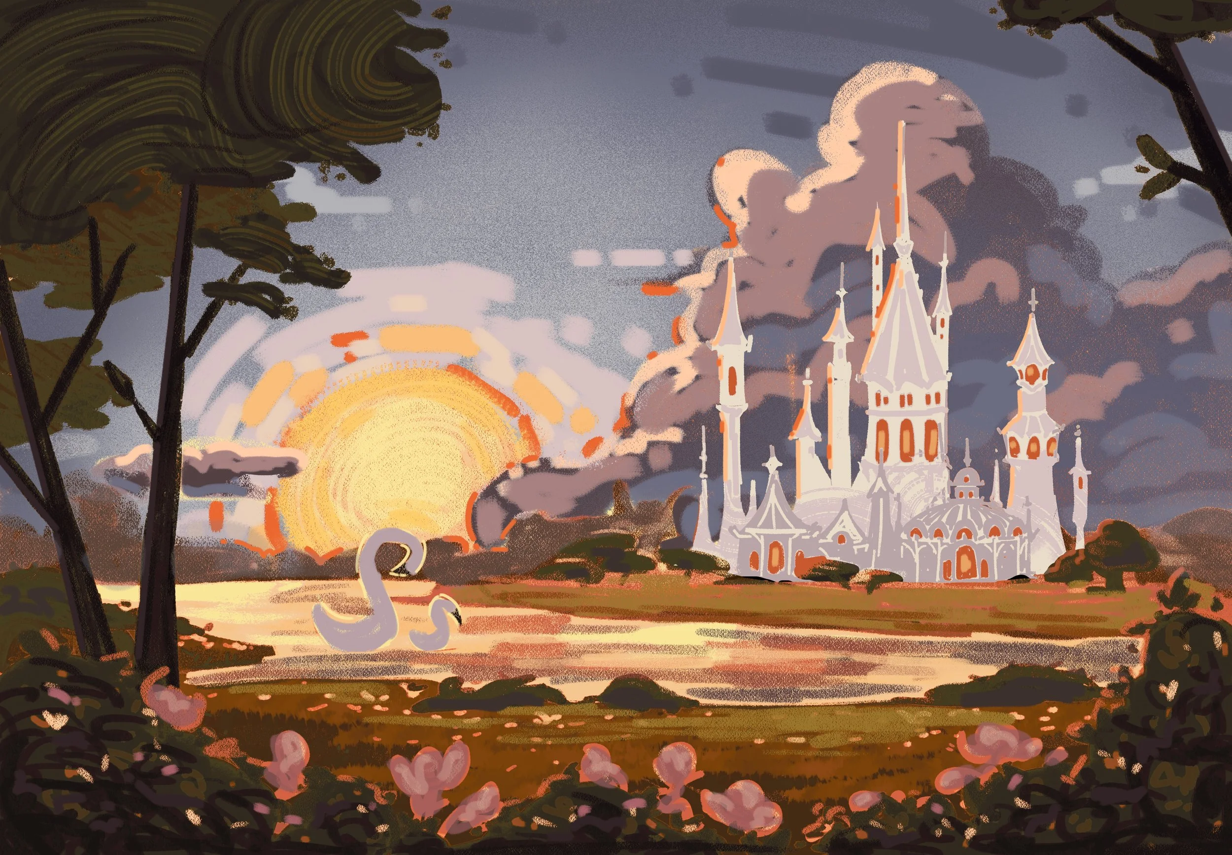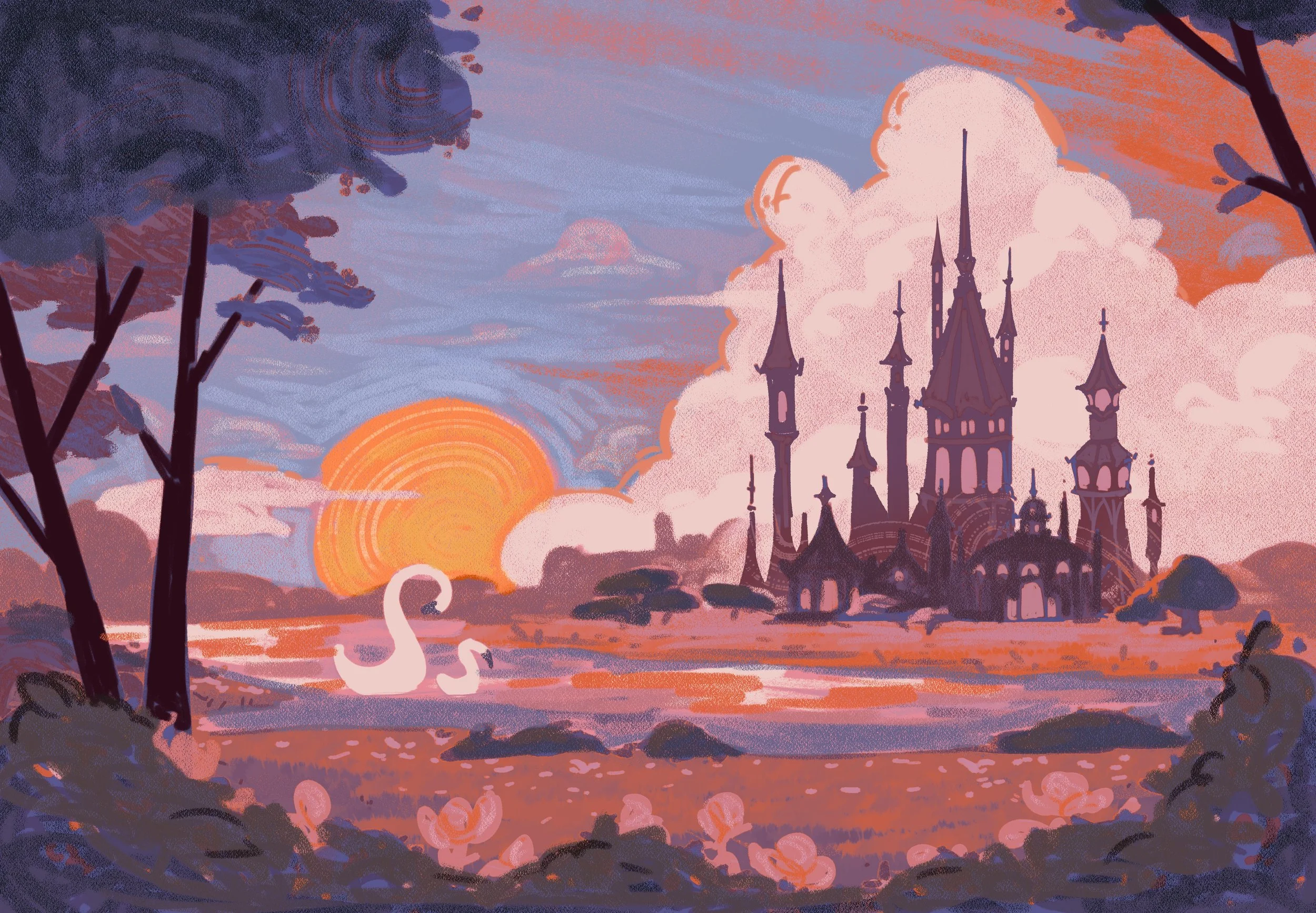Illustrated two endpapers for Owlcrate’s special edition of The Swan’s Daughter by Roshani Chokshi.