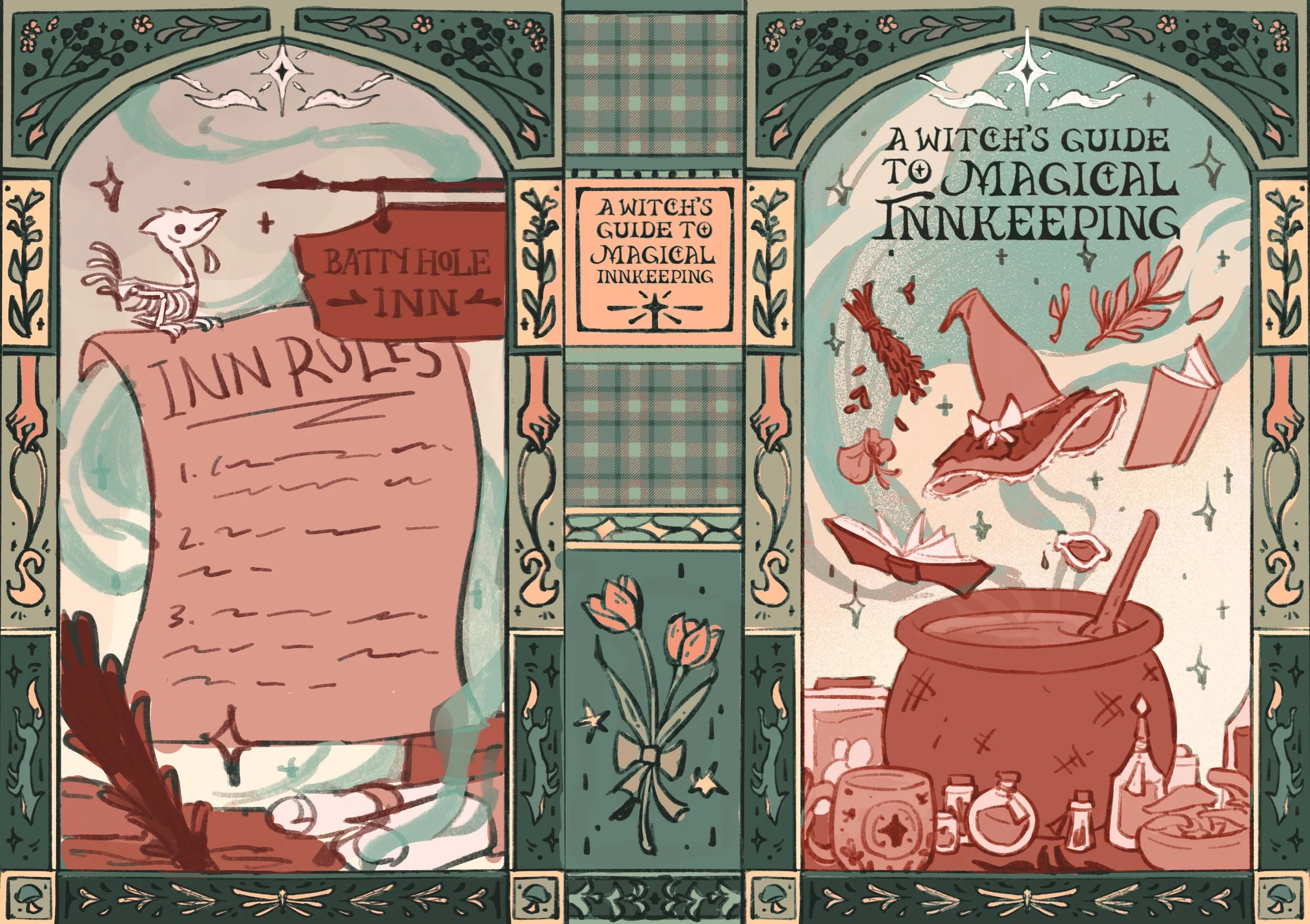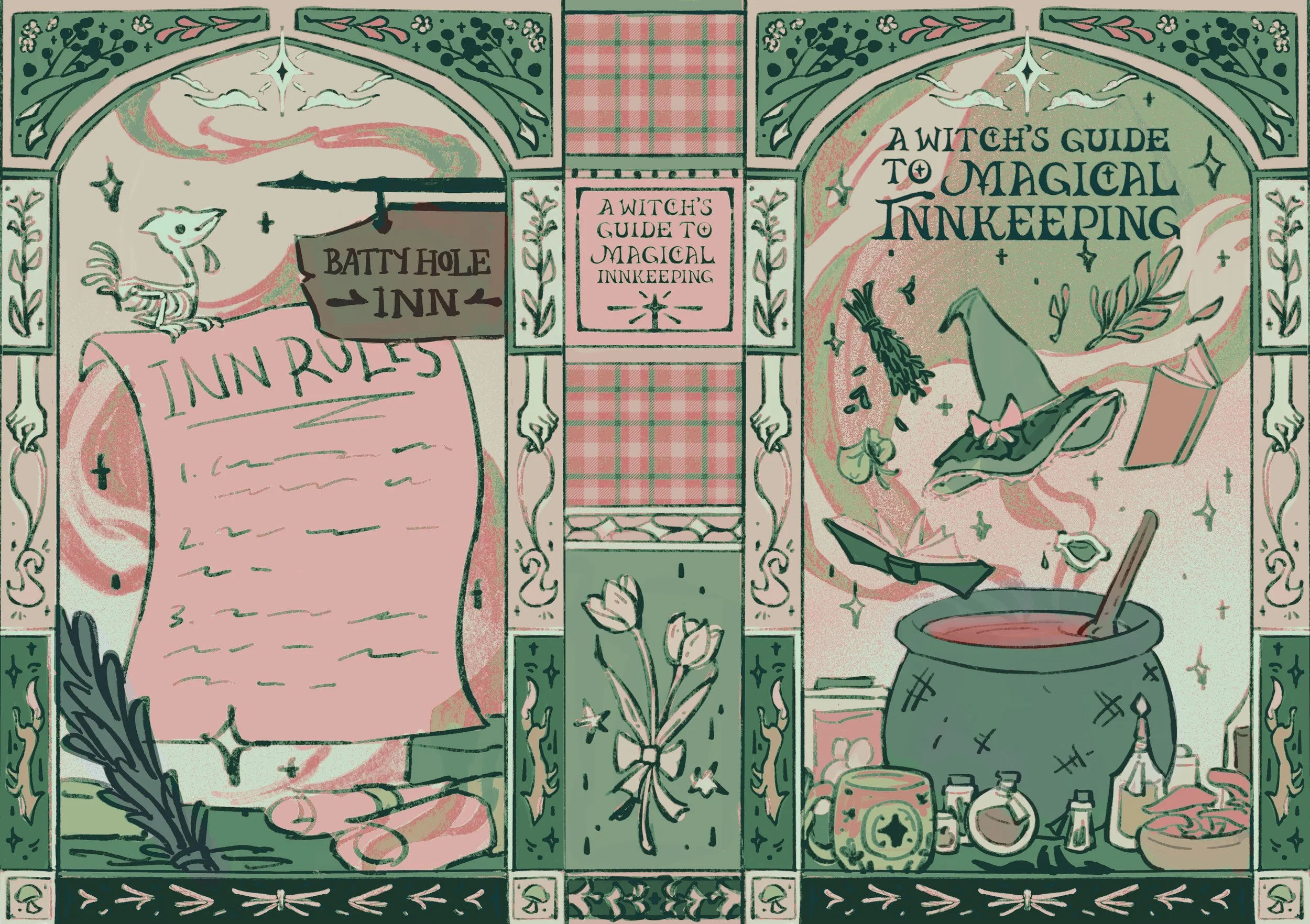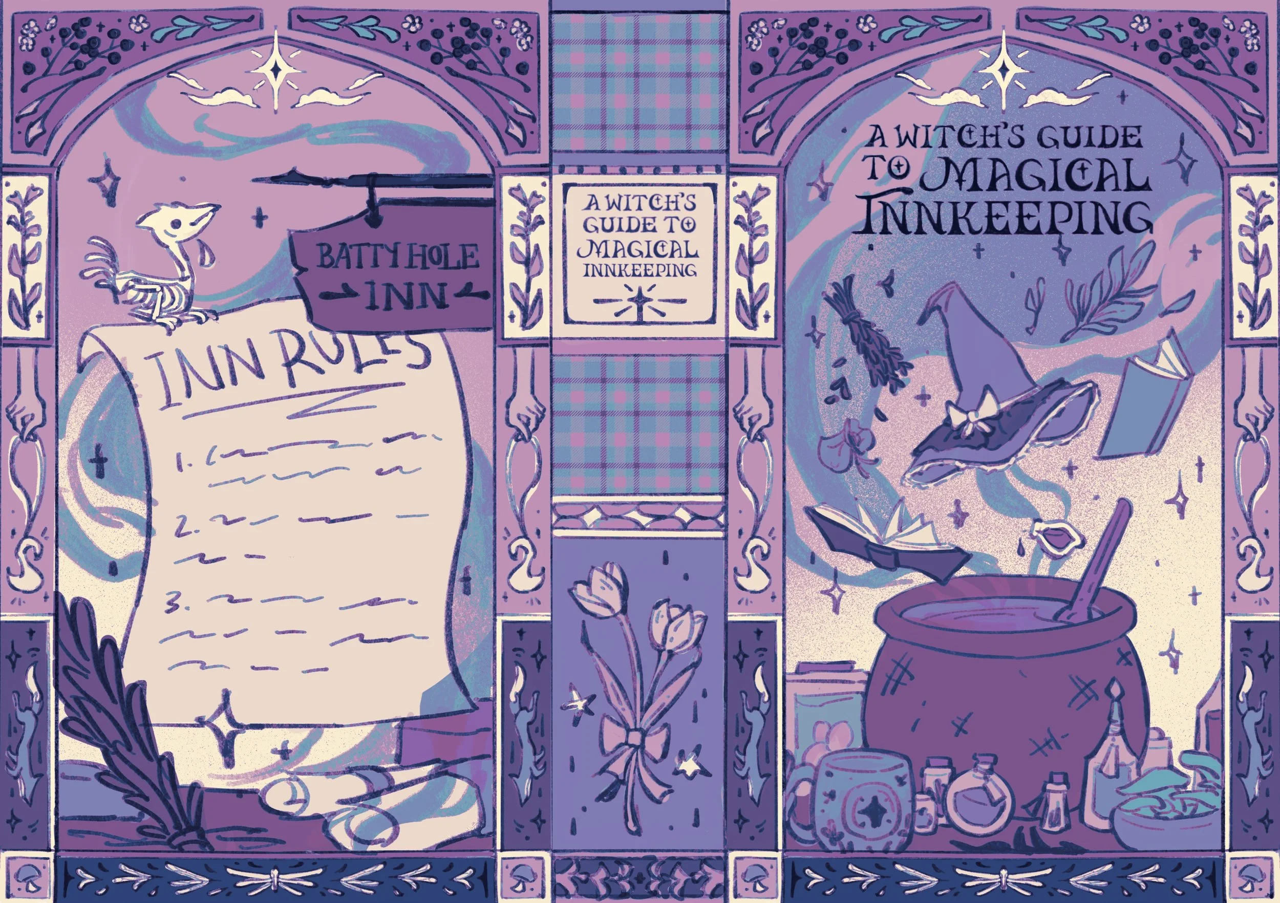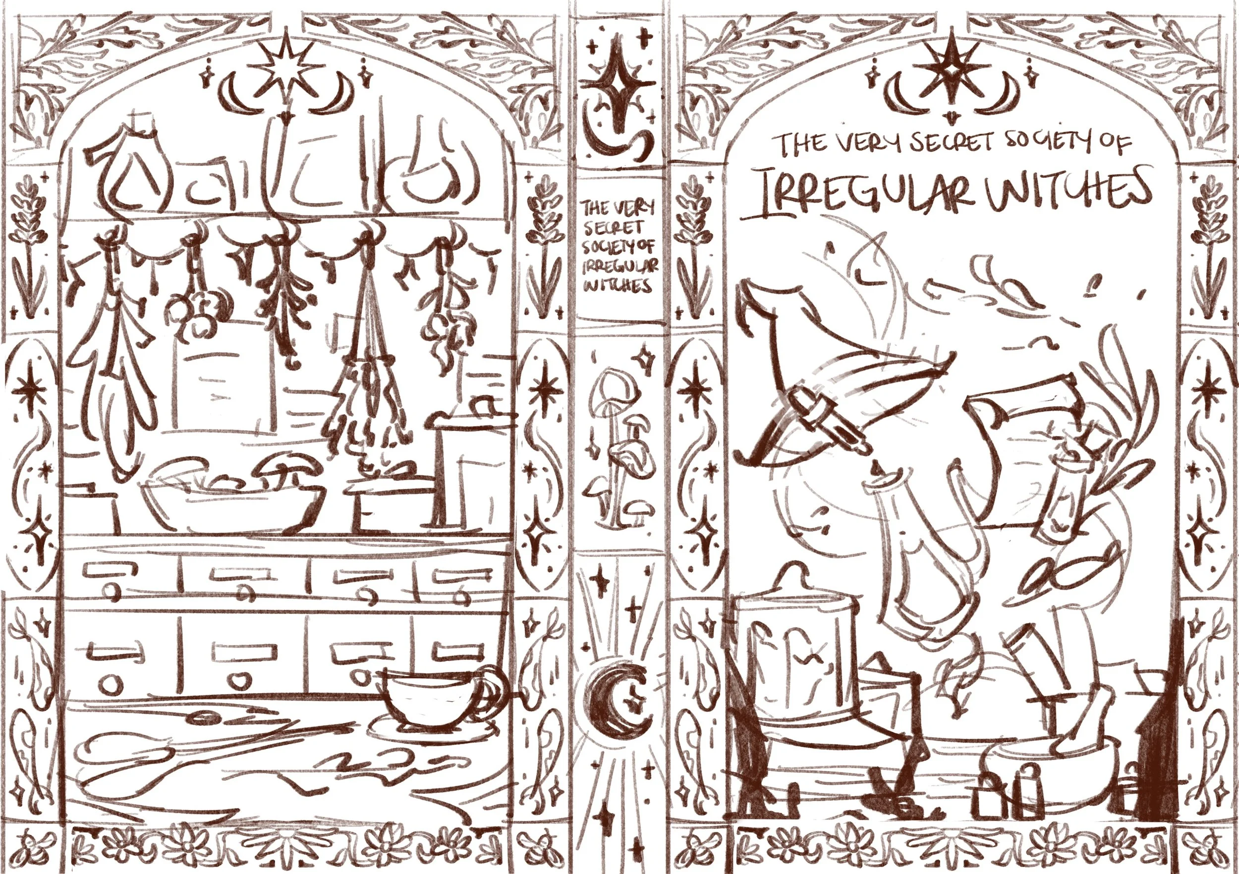Illustrated the special edition case covers for both companion books: The Very Secret Society of Irregular Witches and A Witch’s Guide to Magical Inn-keeping by Sangu Mandanna.