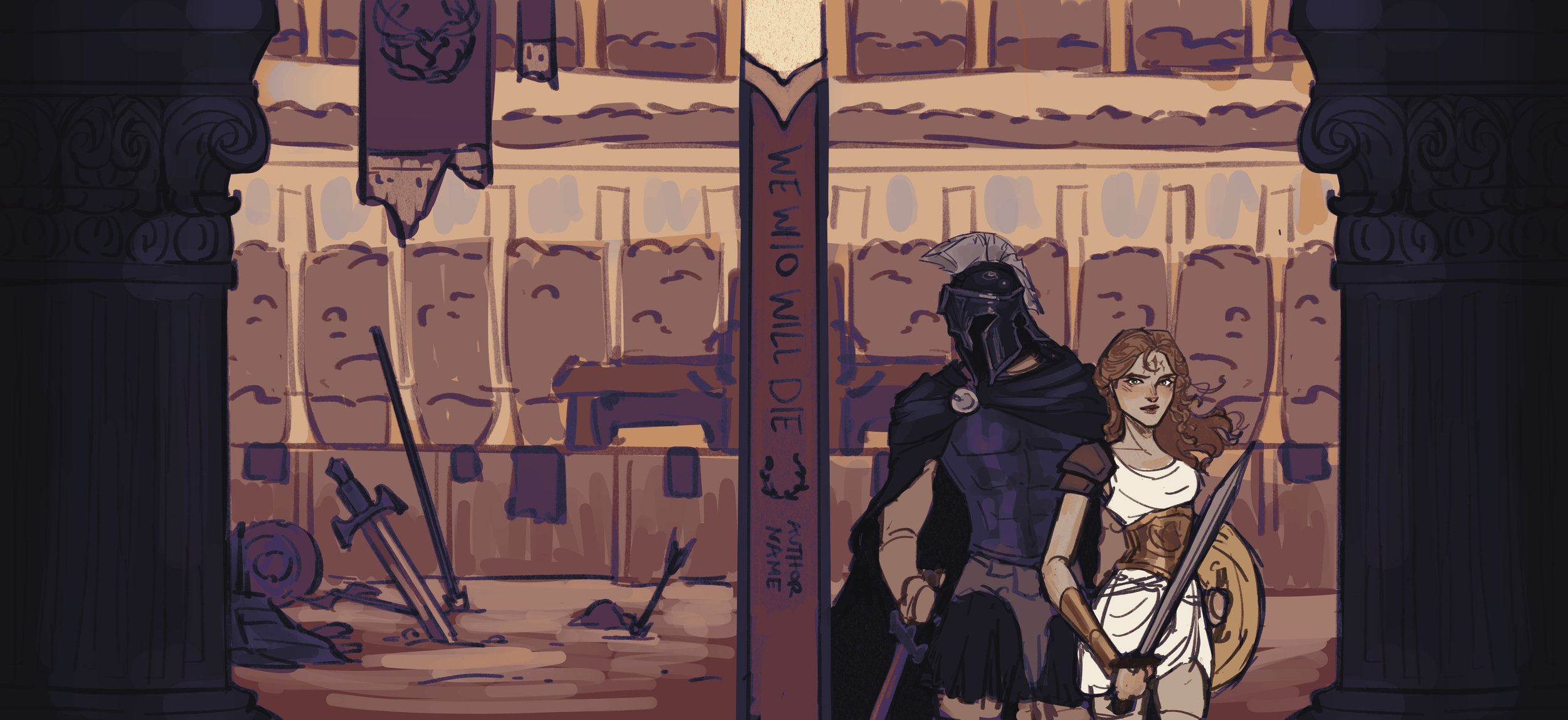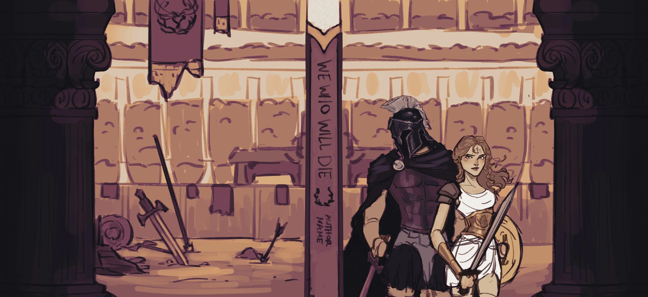 Dust jacket and endpaper illustration for the Allurial special edition of We Who Will Die by Stacia Stark.