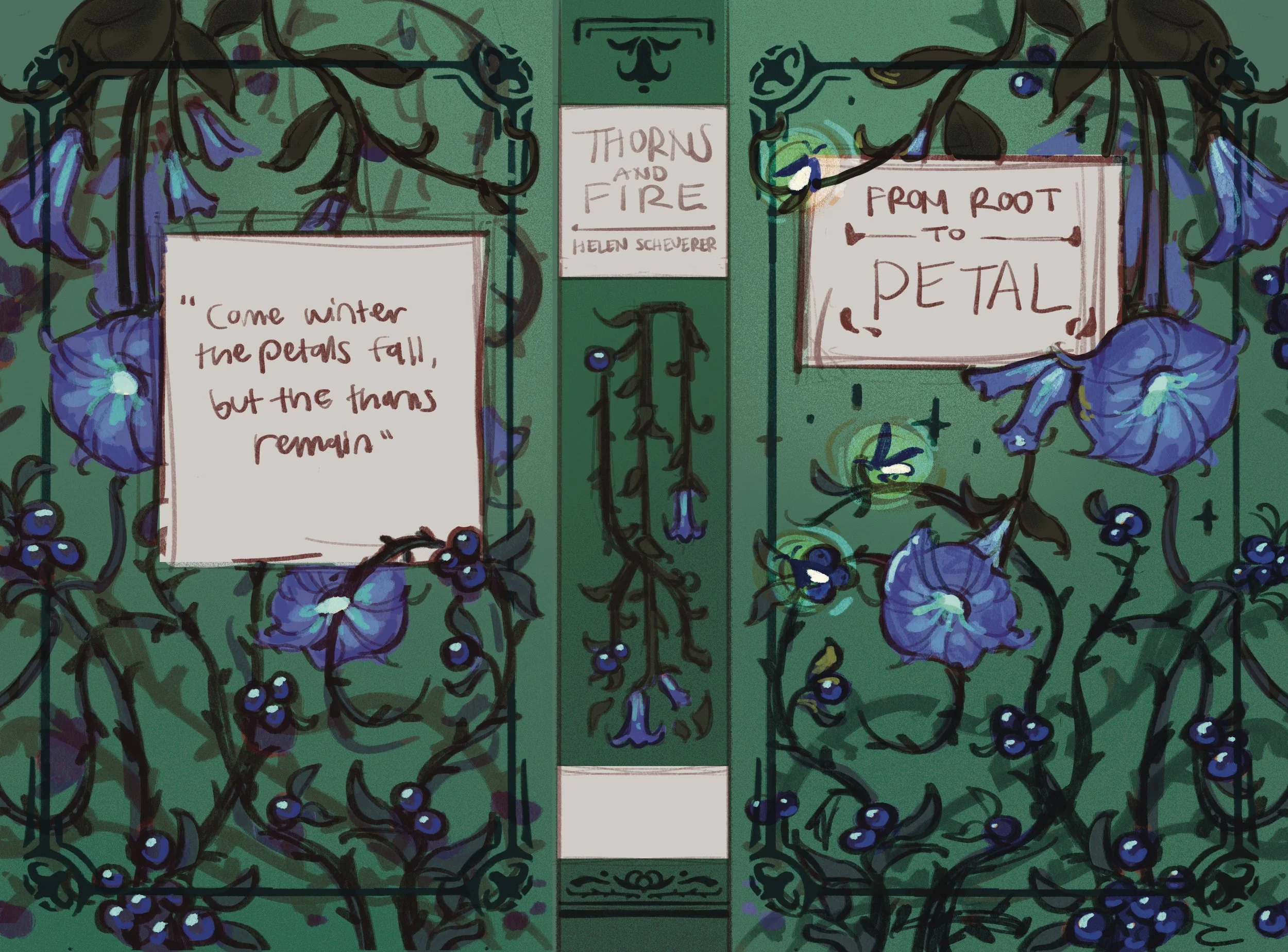 Continuing the rest of the series, I illustrated the special edition cases covers for the remaining trilogy books, Thorns & Fire and Silver & Smoke by Helen Scheuerer.
